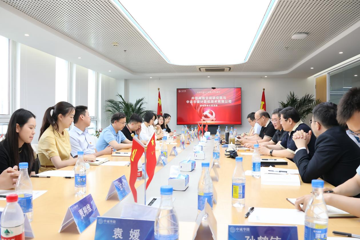 值此中国共产党成立102周年之际,为深入学习贯彻党的二十大精神,以联学联建促提升、聚合力、同发展。中央网信办网空院与中诚华隆于2023年6月27日下午,在中诚华隆北京会议室举行“开展七一联学联建主题活动”。网空院院长、党委书记夏学平一行莅临中诚华隆参观指导,中诚华隆董事长王嘉诚等领导陪同参观,并进行深入座谈交流。