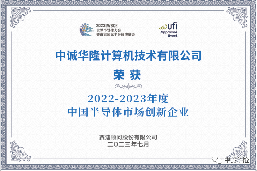 2023世界半导体大会由中国半导体行业协会、中国电子信息产业发展研究院、江苏省工业和信息化厅等共同举办。大会期间,发布了诸多行业级专题报告及举行了重量级行业颁奖盛典,中诚华隆作为中国领先的 IT自主可控、安全可信生态环境建设引领者,凭借在自主可控申威技术路线的华隆芯片领域的快速成长与产品技术创新,以其突出的企业综合实力及行业影响力荣获“2022-2023 中国半导体市场创新企业”重磅奖项,企业硬实力再次收获业界高度肯定!