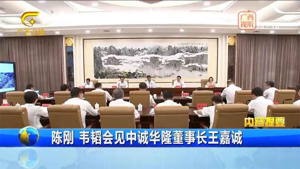 7月4日,广西壮族自治区党委书记、自治区人大常委会主任陈刚,自治区党委副书记、自治区代主席韦韬在南宁会见中诚华隆计算机技术有限公司董事长王嘉诚一行。