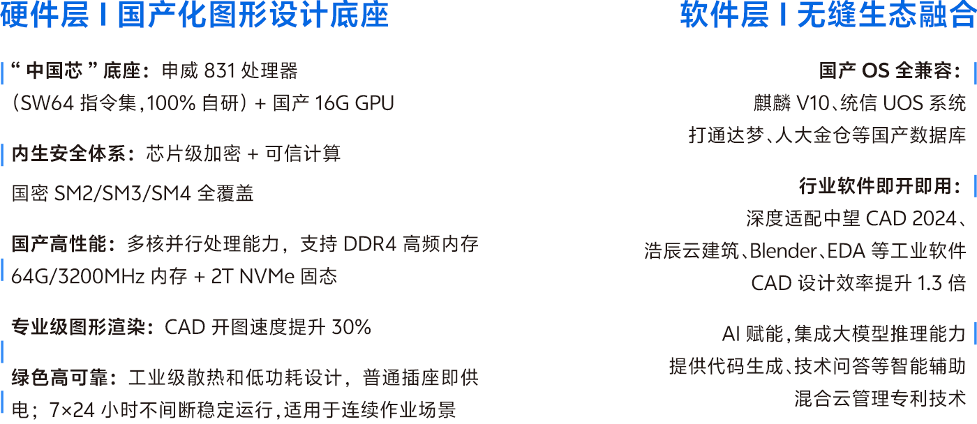 中诚华隆天翊图形工作站通过硬件层与软件层的协同创新,构建了全栈自主可控的国产化图形设计底座。